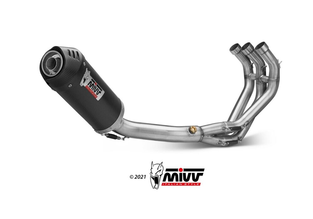 Mivv Oval τελικό, ταιριάζει απόλυτα με το μοντέλο της κάθε μοτοσικλέτας, ιδανικό για χρήση δρόμου και είναι εξοπλισμένο με σιγαστήρα. Αυτή η γραμμή έχει αναθεωρηθεί, δίνοντας μεγάλη προσοχή στις λεπτομέρειες και αντιπροσωπεύει τον ιδανικό συμβιβασμό μεταξύ σχεδιασμού και απόδοσης.