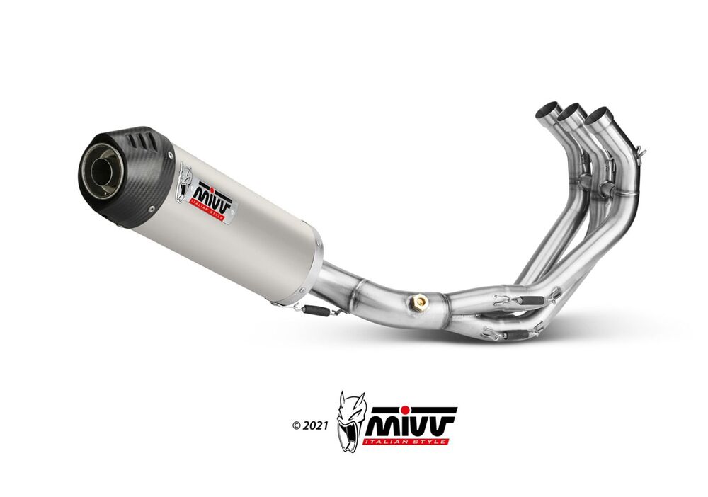 Mivv Oval τελικό, ταιριάζει απόλυτα με το μοντέλο της κάθε μοτοσικλέτας, ιδανικό για χρήση δρόμου και είναι εξοπλισμένο με σιγαστήρα. Αυτή η γραμμή έχει αναθεωρηθεί, δίνοντας μεγάλη προσοχή στις λεπτομέρειες και αντιπροσωπεύει τον ιδανικό συμβιβασμό μεταξύ σχεδιασμού και απόδοσης.