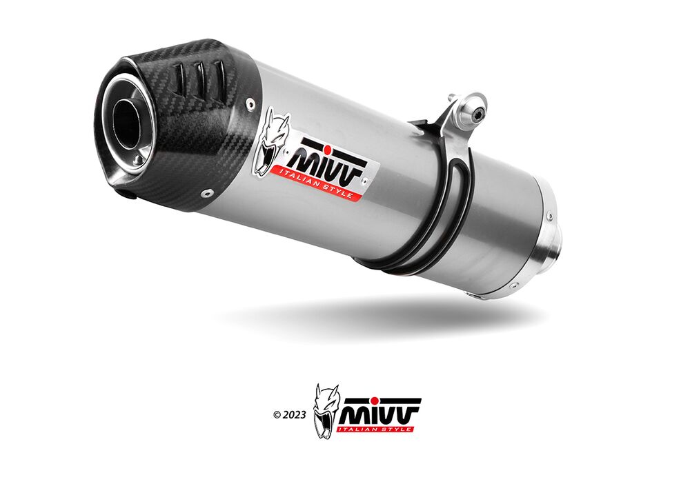 Mivv Oval τελικό, ταιριάζει απόλυτα με το μοντέλο της κάθε μοτοσικλέτας, ιδανικό για χρήση δρόμου και είναι εξοπλισμένο με σιγαστήρα. Αυτή η γραμμή έχει αναθεωρηθεί, δίνοντας μεγάλη προσοχή στις λεπτομέρειες και αντιπροσωπεύει τον ιδανικό συμβιβασμό μεταξύ σχεδιασμού και απόδοσης.