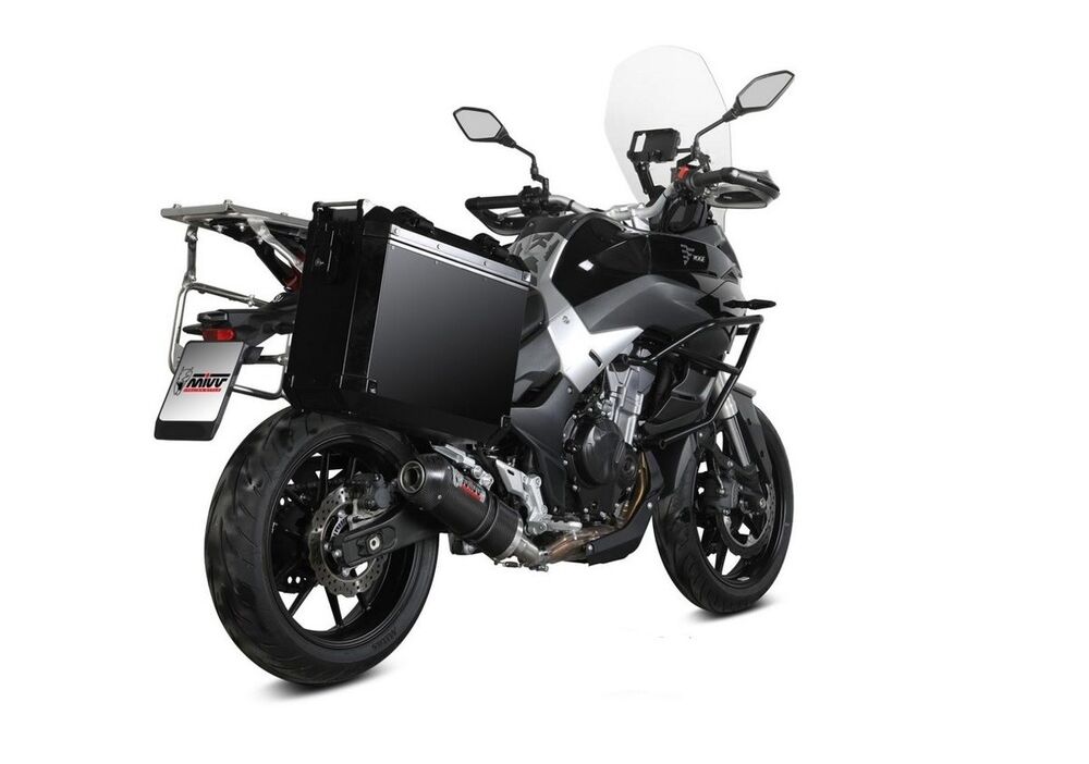 Mivv Oval τελικό, ταιριάζει απόλυτα με το μοντέλο της κάθε μοτοσικλέτας, ιδανικό για χρήση δρόμου και είναι εξοπλισμένο με σιγαστήρα. Αυτή η γραμμή έχει αναθεωρηθεί, δίνοντας μεγάλη προσοχή στις λεπτομέρειες και αντιπροσωπεύει τον ιδανικό συμβιβασμό μεταξύ σχεδιασμού και απόδοσης.