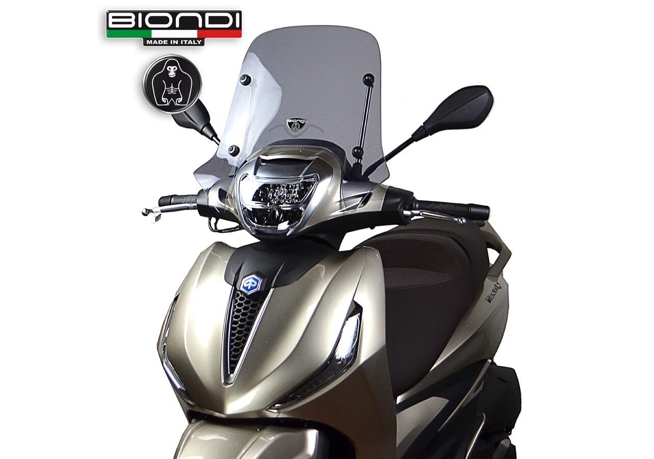 Biondi κοντή ζελατίνα για Piaggio Beverly 300 400 HPE 2021-2024 σε ελαφρώς φιμέ χρώμα και ύψος 45cm.