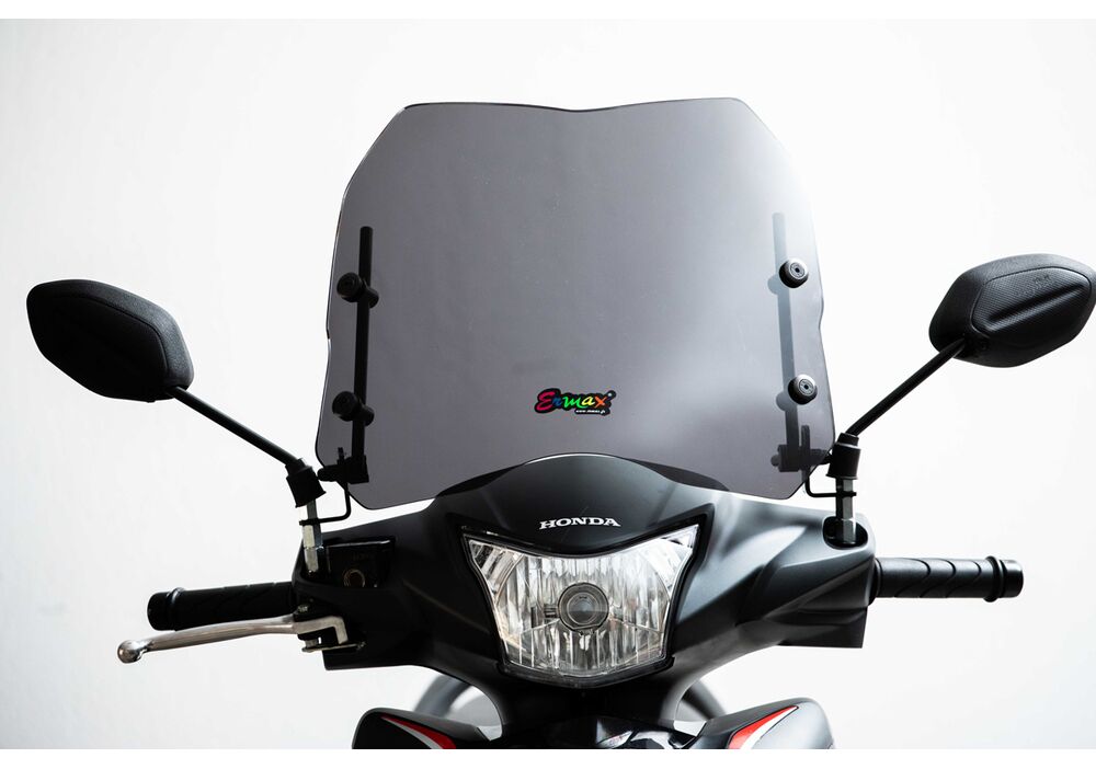 "Ermax ζελατίνα κοντή universal με βάσεις στους καθρέπτες, με 35cm συνολικό ύψος.Διατίθεται κυρίως σε χρώμα ελαφρώς φιμέ.Επίσης υπάρχει δυνατότητα επιλογής διαφορετικών χρωμάτωνΤαιριάζει στα μοντέλα Honda SH 150, SH 300, SH 350"